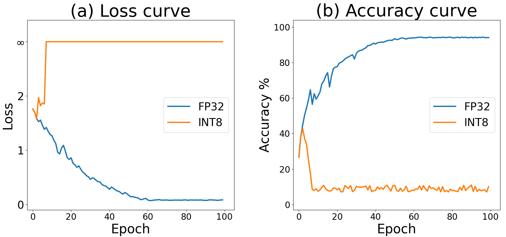 Backpropagation has been the standard for DNN training but is inefficient for resource-constrained systems because it requires storing the entire computational graph and performing expensive backward computations. Quantization—a widely adopted technique for inference acceleration—reduces precision of weights and activations (e.g., to INT8), lowering both memory footprint and computational overhead. However, most quantization work has focused on inference rather than training. Directly quantizing gradients for backpropagation often leads to severe accuracy degradation due to error accumulation across layers.